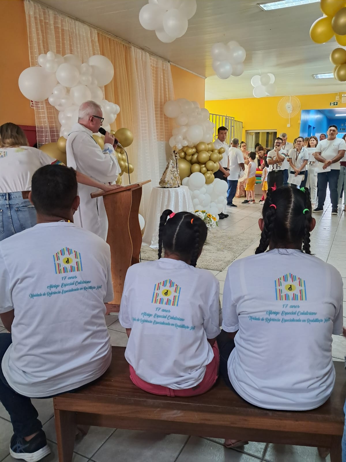 No dia de hoje tivemos a honra de receber no Abrigo Especial Calabriano/URE-REI a imagem peregrina de Nossa Senhora de Nazaré. Foi um momento de benção e fé que iniciou com uma breve celebração conduzida pelo nosso diretor Pe. João Pilotti que em seguida realizou a peregrinação com a imagem por todo o espaço.